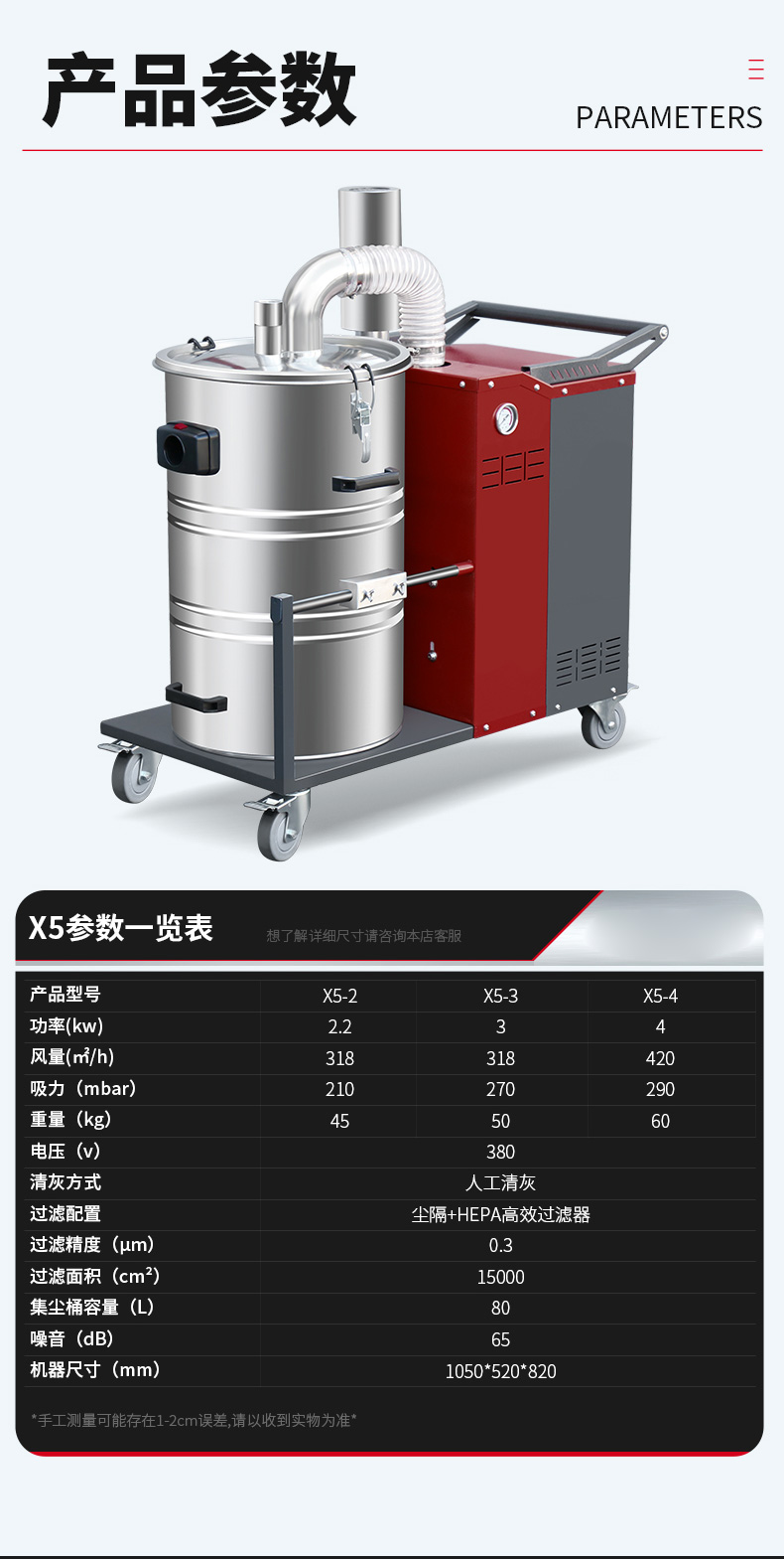 江苏坦洁380V双桶不锈钢工业吸尘器X7系列